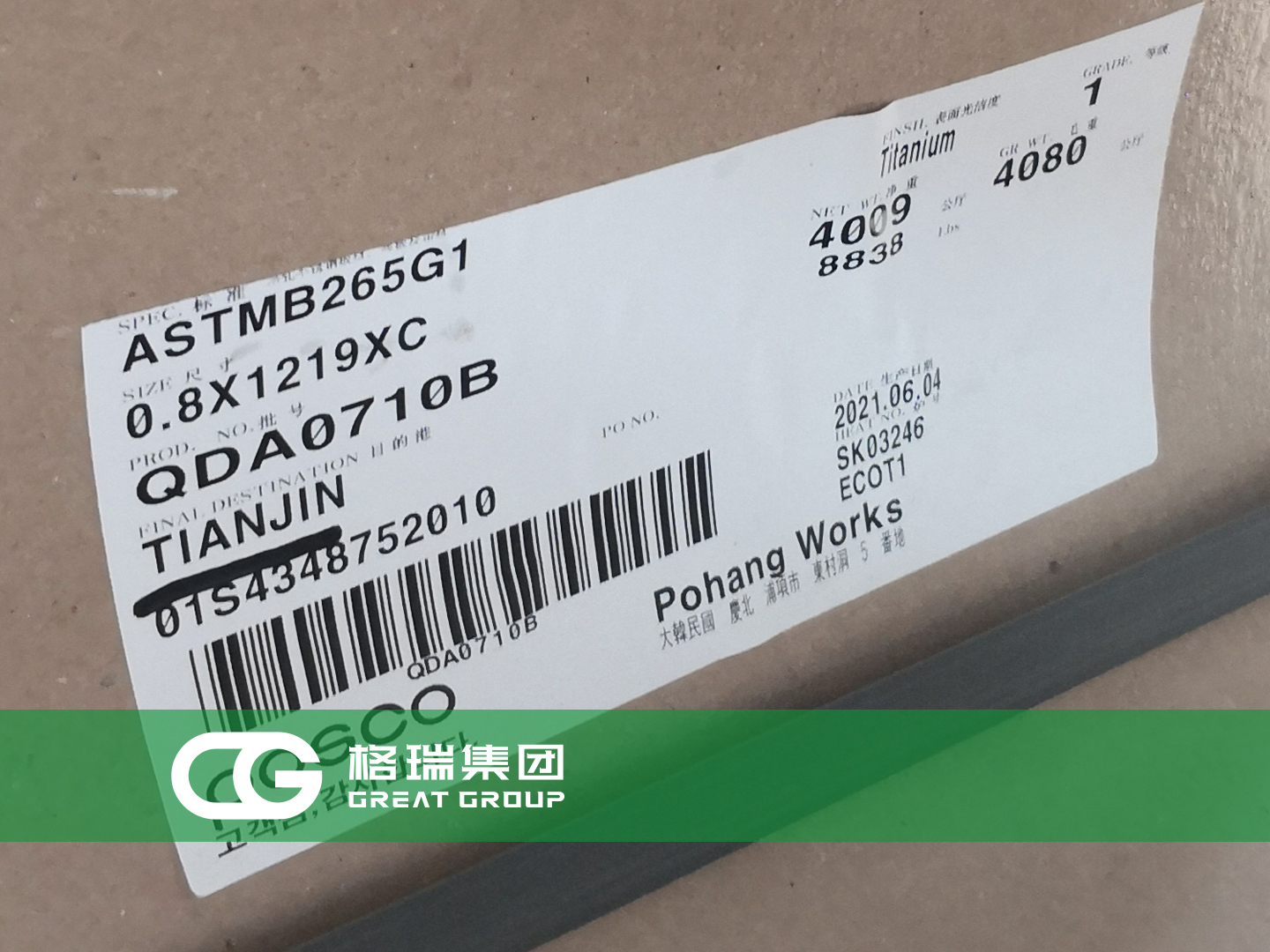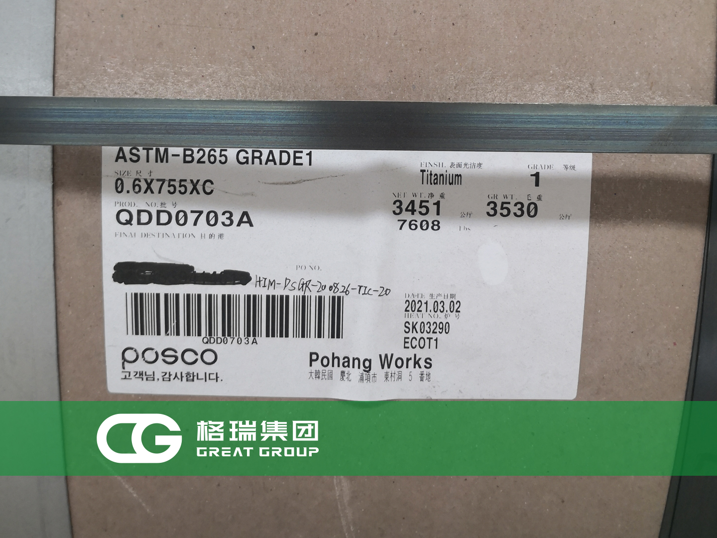 文章標(biāo)題:格瑞集團(tuán):韓國浦項(xiàng)鈦板到貨 板式換熱器專用
